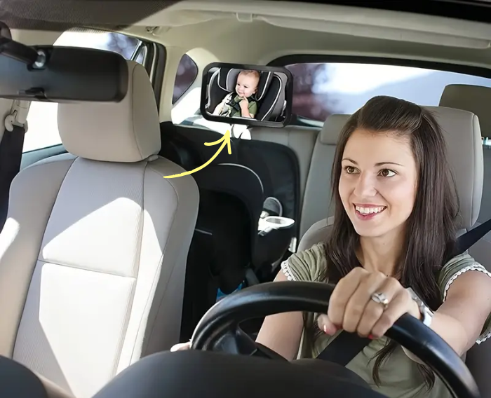 Лайфхак 1: для додаткової безпеки та контролю за малюком, який сидить обличчям проти руху можете використати спеціальне дзеркало для спостереження за дитиною в автокріслі. Воно дозволяє бачити малюка, не відволікаючись від дороги та не повертаючи голову під час руху.