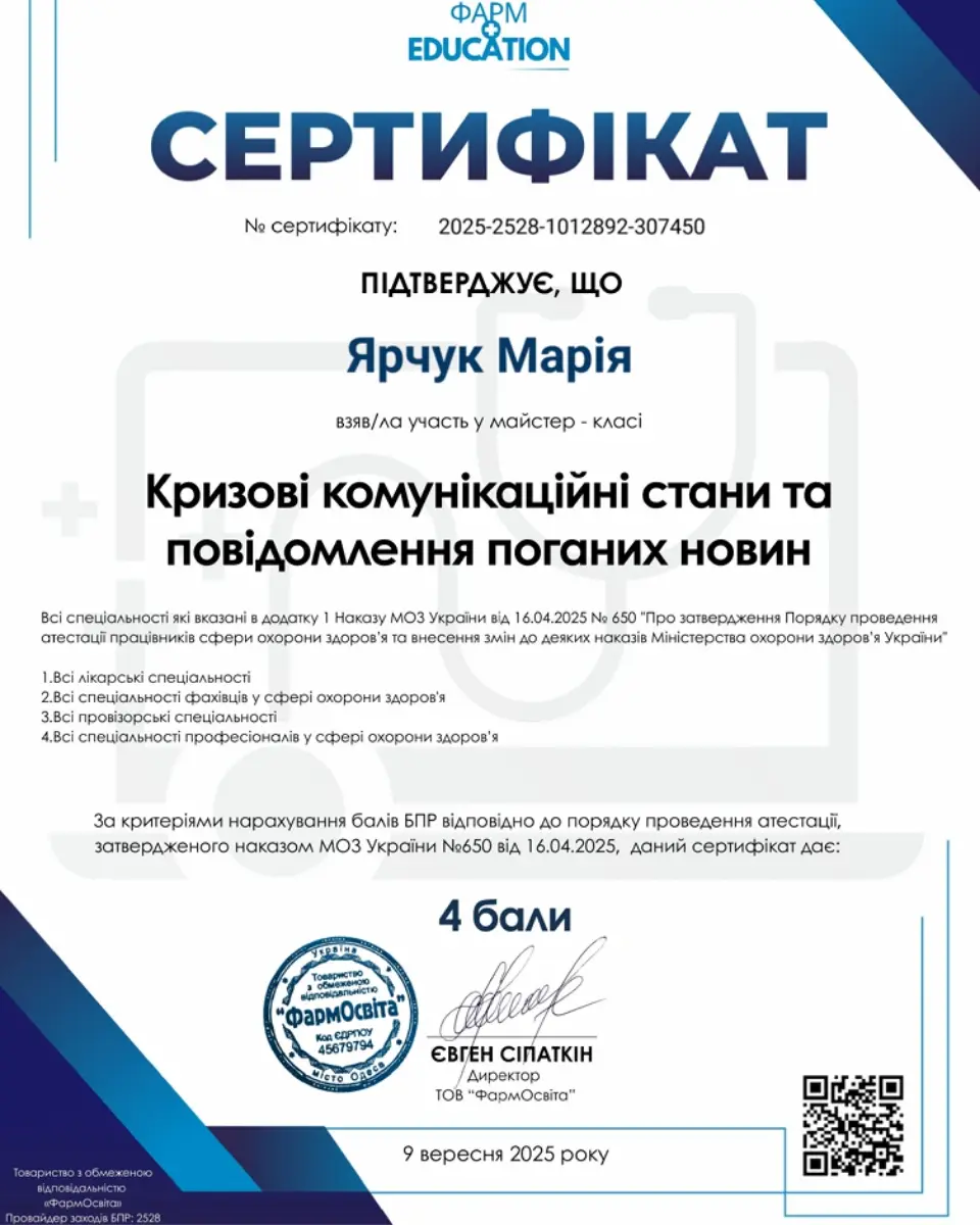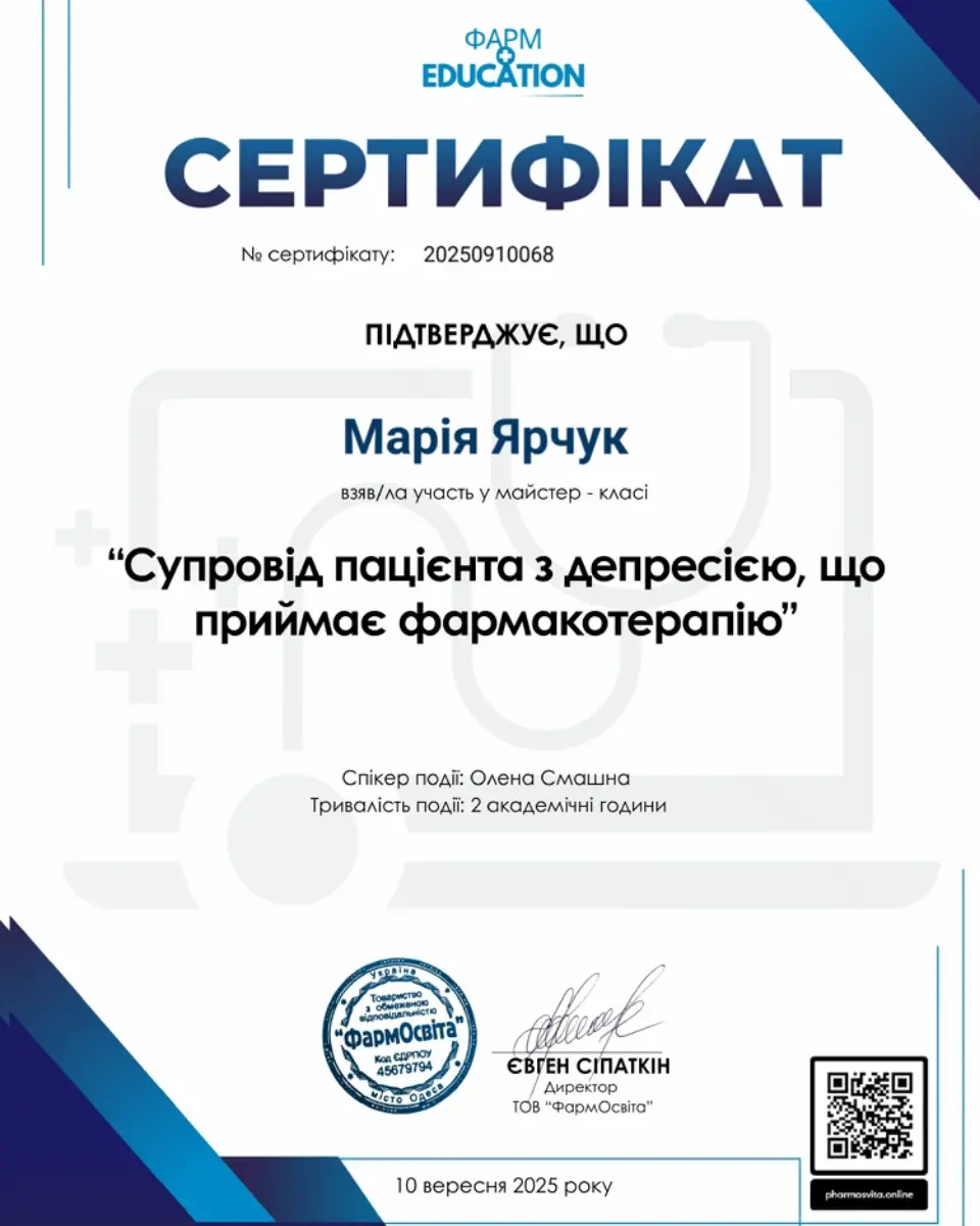 - 2025 - Супровід пацієнта з депресією, що приймає фармакотерапію