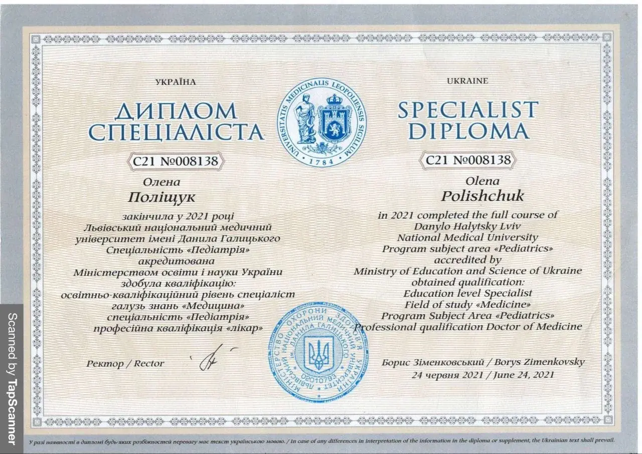 - 2021 р. - Львівський національний медичний університет ім. Данила Галицького