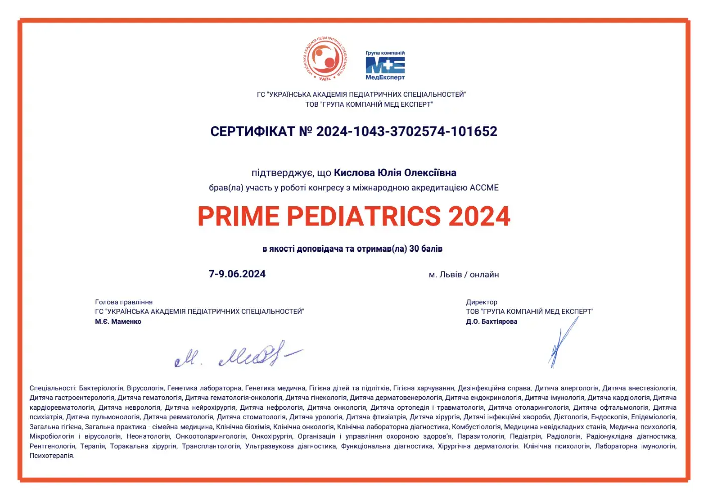 - 2024 р. стажування в Інституті охорони здоров'я дітей "CZD", Варшава